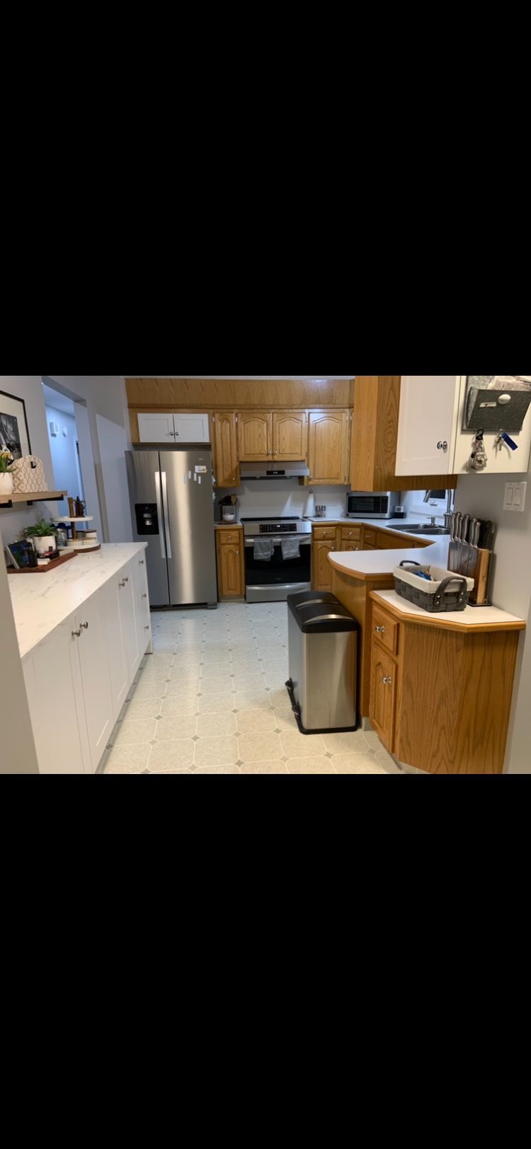 Opened up the space by removing a non-bearing wall, and continued the existing hardwood into the kitchen. Timeless white shaker w/ 'marble' quartz tops, and simple subway backsplash